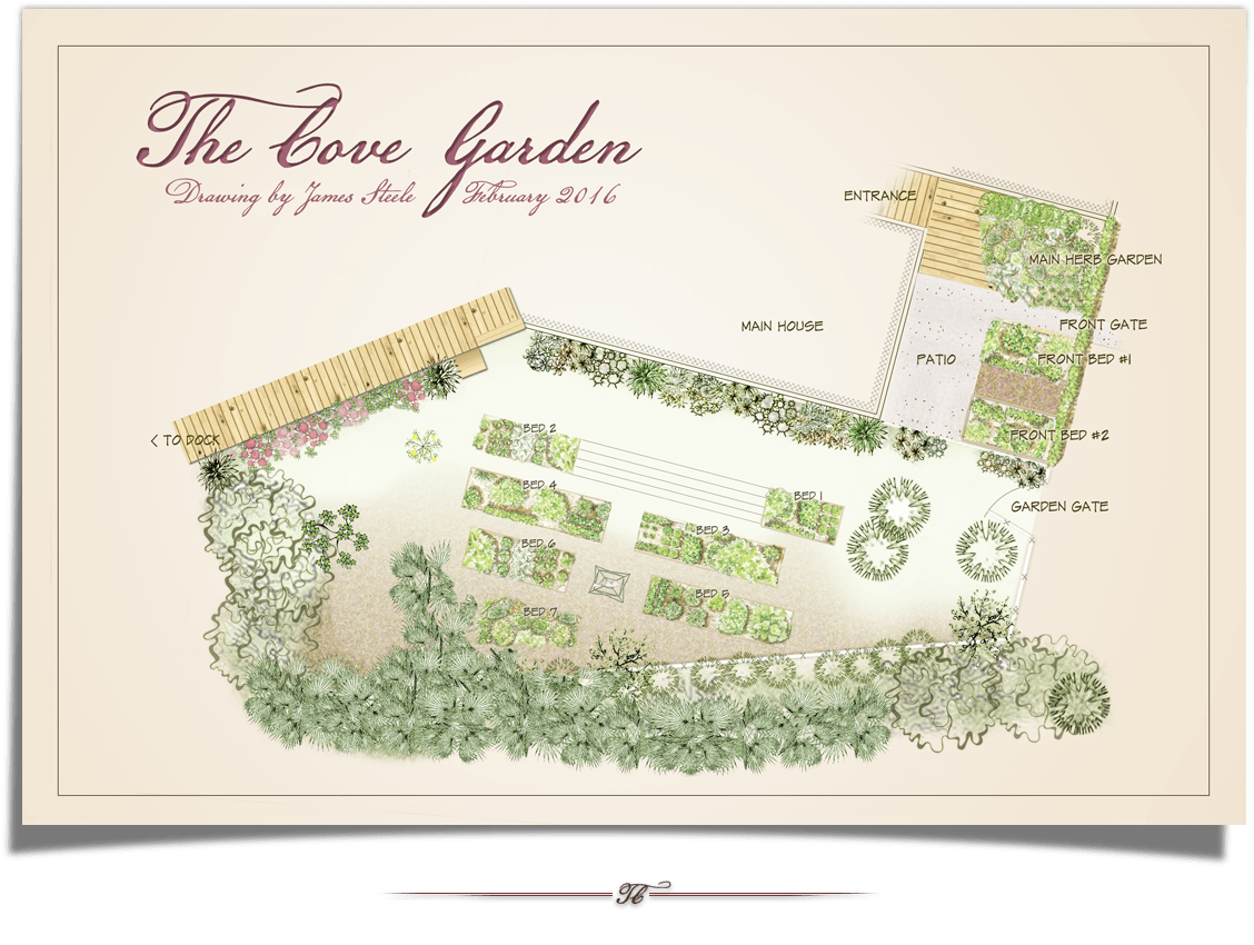 Further into the homestead are our home, our kitchen herb garden, and our raised beds garden. We have a total of 9 garden beds, Three are used as kitchen garden beds and the other 6 are for seasonal fruits and vegetables, In the backyard, along the edge of Gillis Pond, we are currently creating 2 terraced areas that will eventually be the home of Bananas, Papayas and other fruit trees and spices. See more information on gardening, gardening tips, and more in the section The Cove Garden…